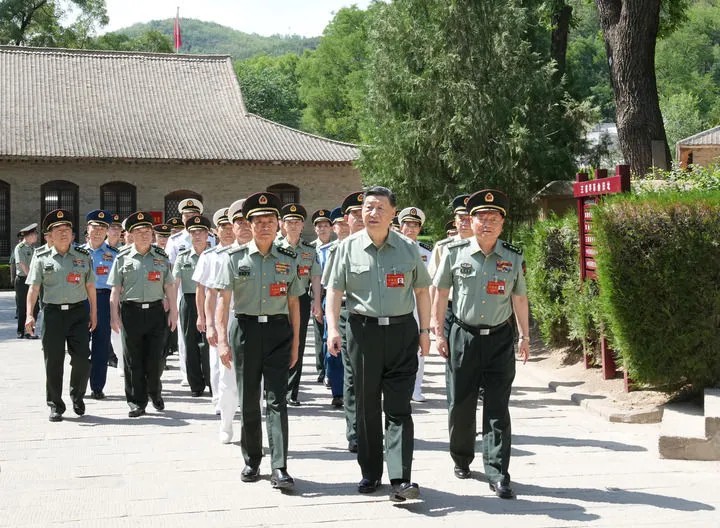 6月17日至19日,中央軍委政治工作會(huì)議在陜西延安召開(kāi)。中共中央總書記、國(guó)家主席、中央軍委主席習(xí)近平出席會(huì)議并發(fā)表重要講話。這是17日下午,習(xí)近平帶領(lǐng)軍委一班人和各部門各單位主要負(fù)責(zé)同志瞻仰王家坪革命舊址。新華社記者 李剛 攝
