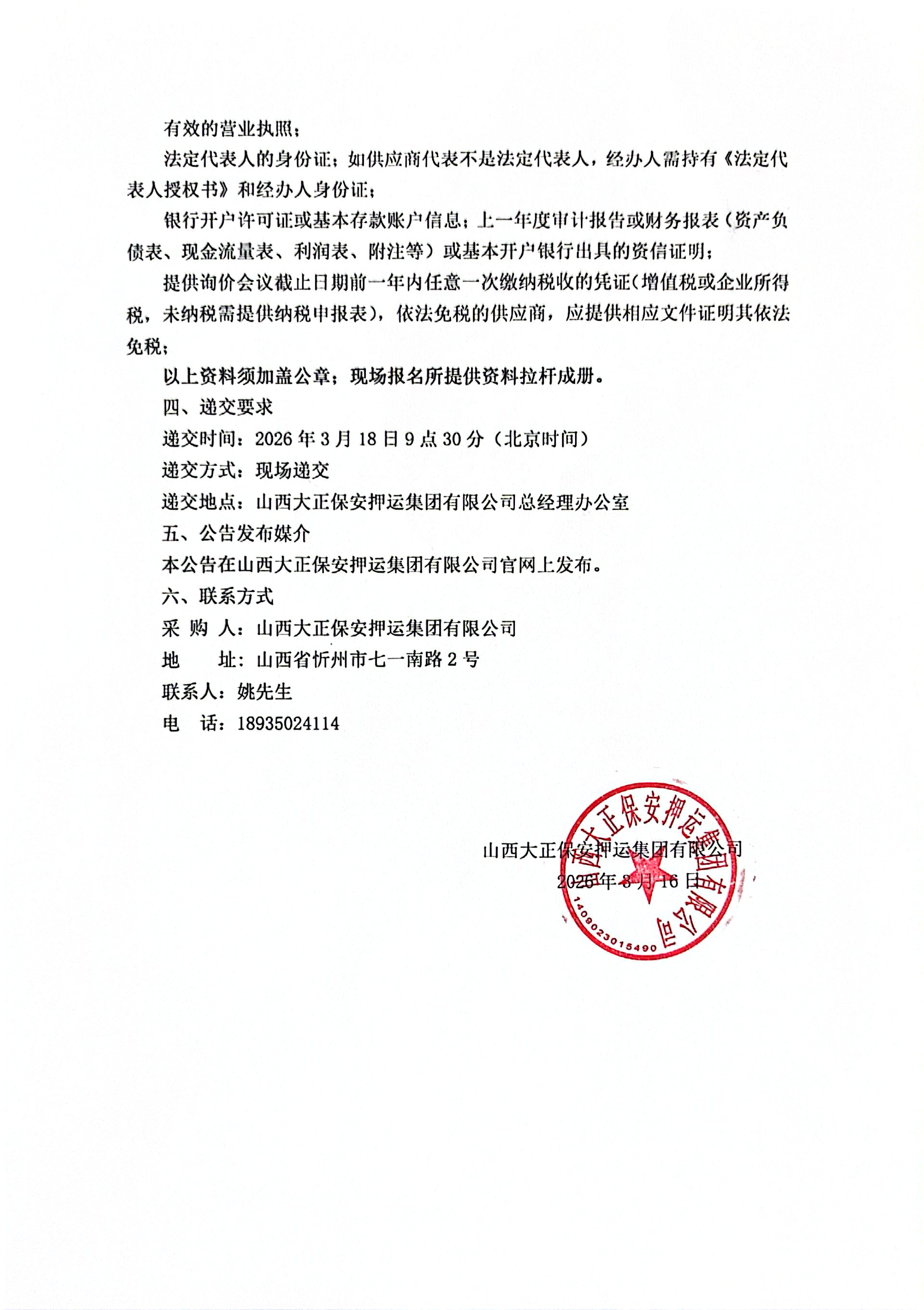 山西大正保安押運(yùn)集團(tuán)有限公司